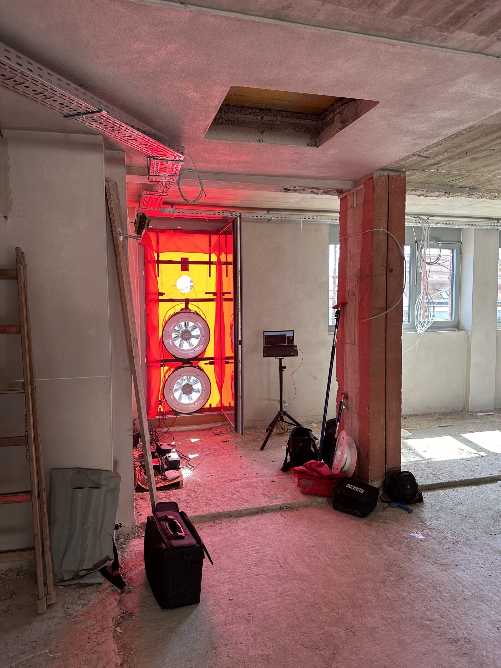 In der Bauphysik umfasste der Auftrag die Erstellung der Einreichunterlagen inkl. Energieausweise und ein Gutachten für die Schallemissionen der geplanten Haustechnikanlagen. Im Zuge der Planung des Veranstaltungssaals wurde eine aufwendige 3D-Akustikberechnung durchgeführt. Nach dessen Fertigstellung konnten mittels Schallmessungen die Nachhallzeiten an unterschiedlichen Punkten im Saal in der Realität bestätigt werden. Nach Fertigstellung des Rohbaus wurde der Blower-Door-Test durchgeführt, bei welchem eine Luftwechselrate von 0,4h-1 gemessen wurde.
